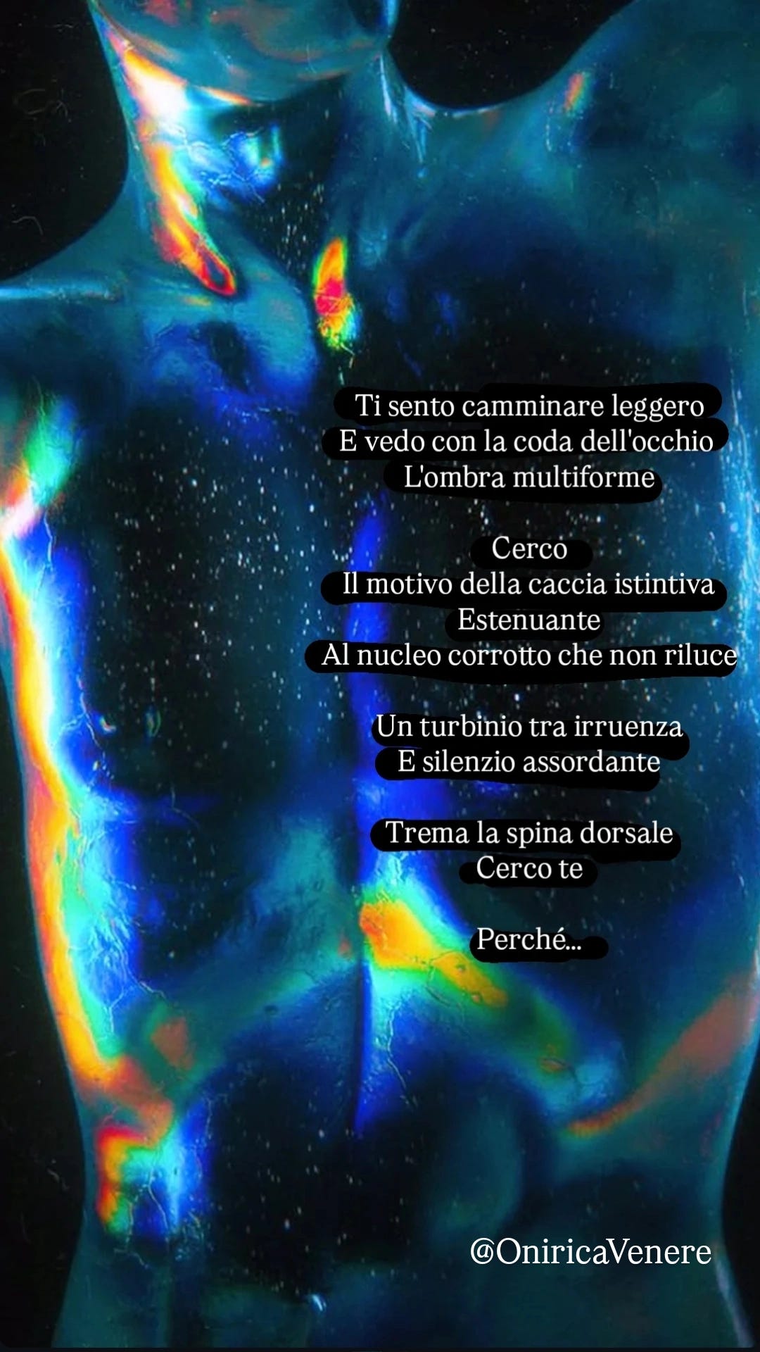 #32 - corrottoOnirica VenereMar 08, 20262ShareTi sento camminare leggero E vedo con la coda dell'occhio L'ombra multiformeCerco Il motivo della caccia istintiva Estenuante Al nucleo corrotto che non riluceUn turbinio tra irruenza E silenzio assordanteTrema la spina dorsale Cerco tePerché...